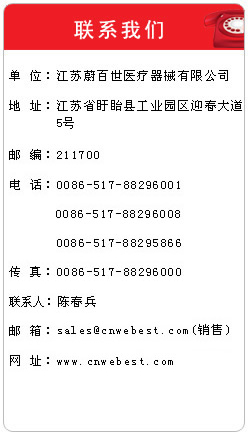聯系人:陳春兵 地址:江蘇省盱眙縣工業園區迎春大道5號 郵編:211700 互聯網藥品信息服務資格證書號:(蘇)-非經營性-2023-0029 醫療器械投拆舉報電話:12315 電話:0086-517-88296001 88296008 0086-517-88295866 傳真:0086-517-88296000 網址:www.cnwebest_com.ken888.cn E-mail:sales@cnwebest_com.ken888.cn(銷售) 后臺管理 郵箱登錄 備案號:蘇ICP備17002214號-1 |